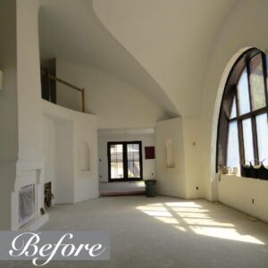 Warline provided colour advice and consultation on this project. Originally, architectural design plans called for all the ceilings to be painted white. Warline recommended wrapping the colour on the large barrel ceiling and surrounding areas to better showcase the curve of the ceiling and the stunning architecture of the space.